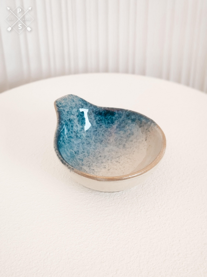 صحن سيراميك صغير بيج مع توشيحة ازرق
