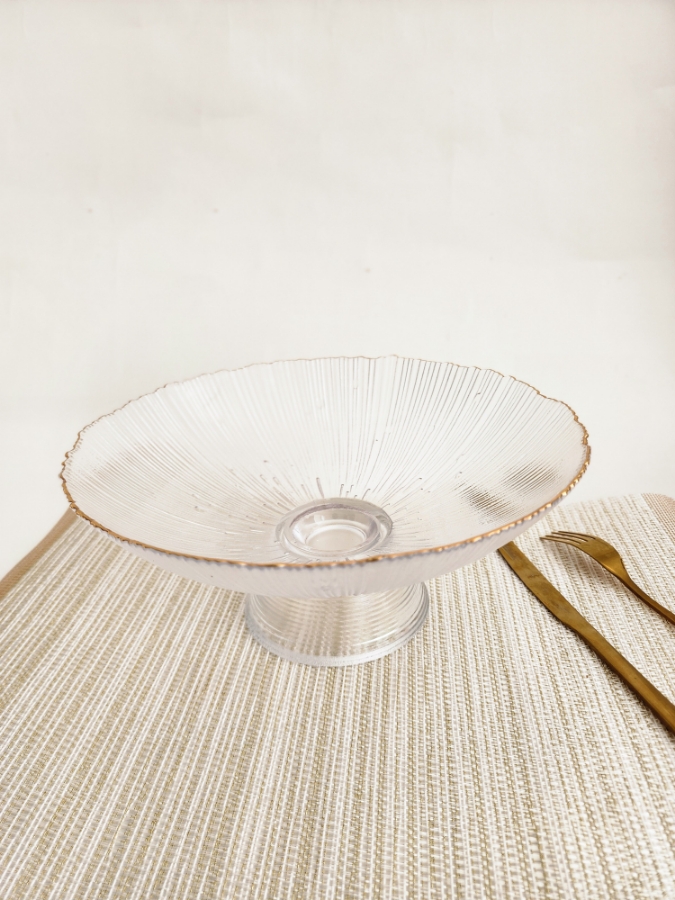 صحن مائدة زجاجي مع قاعدة شفاف باطراف ذهبية قطر ٢٤سم