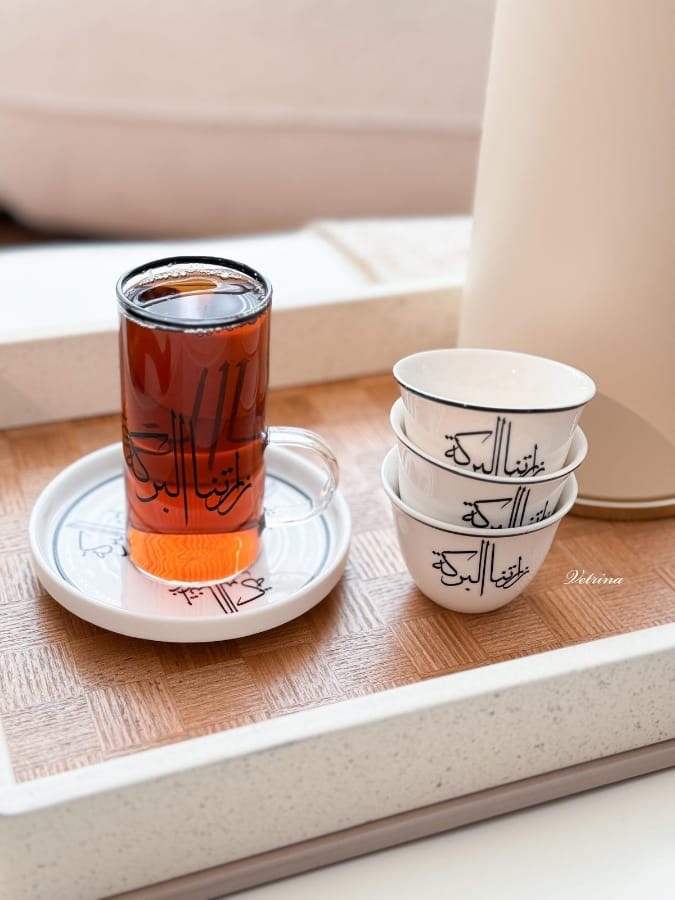 طقم ضيافة زارتنا البركة 6 كاسات شاي ، 6 صحون، 6 فناجين قهوة سادة