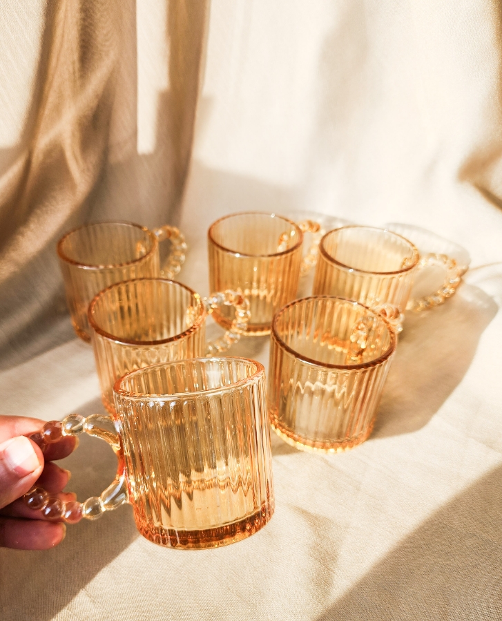 طقم فناجين قهوة شفاف باللون العسلي 6 قطع