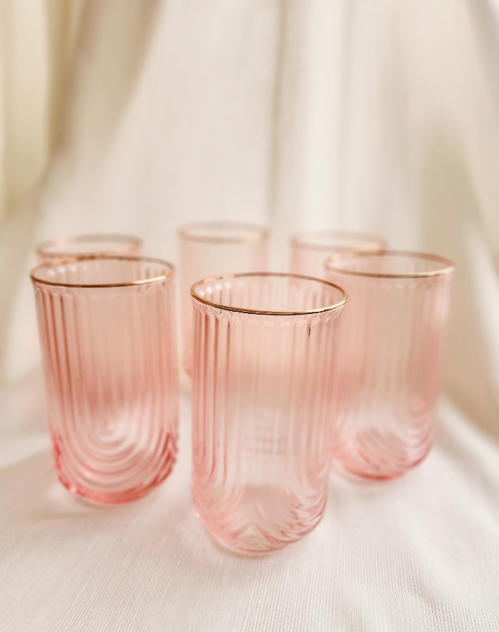 طقم كاسات عصير زجاجي باللون الزهري ٦ قطع