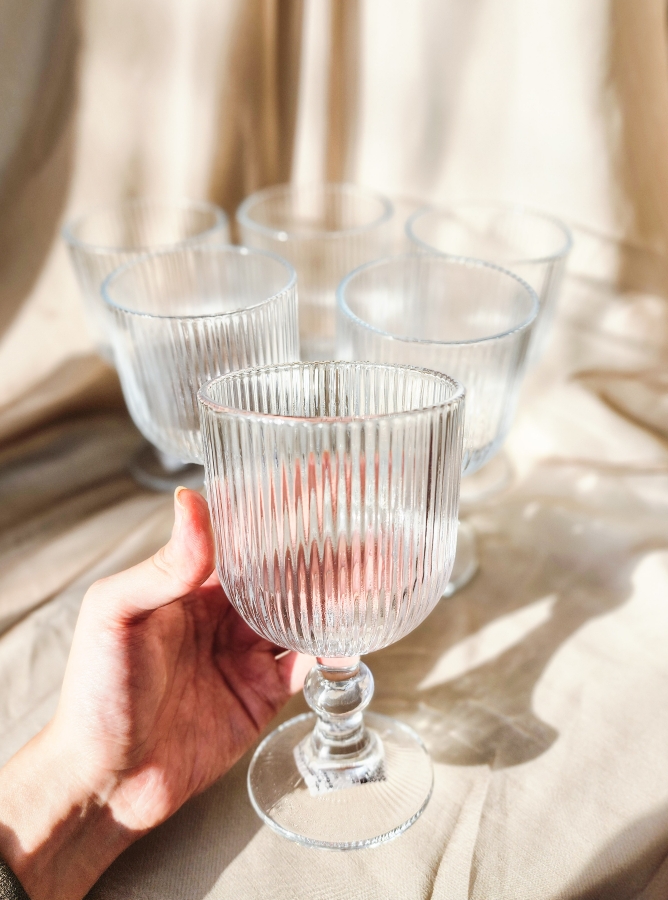 طقم كاسات عصير شفاف مع قاعدة 6 قطع