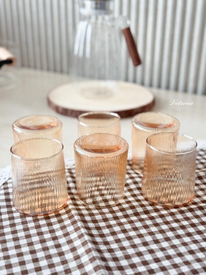 طقم كاسات عصير مخطط لون عسلي 6 قطع