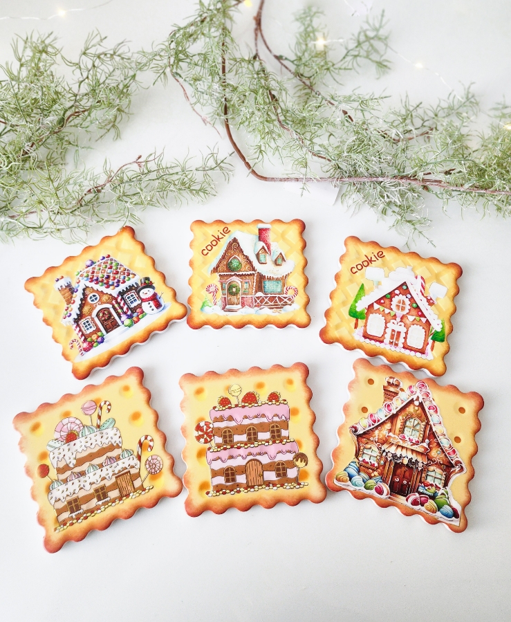 كوستر شتاء زجاج برسوم بيوت و كعك
