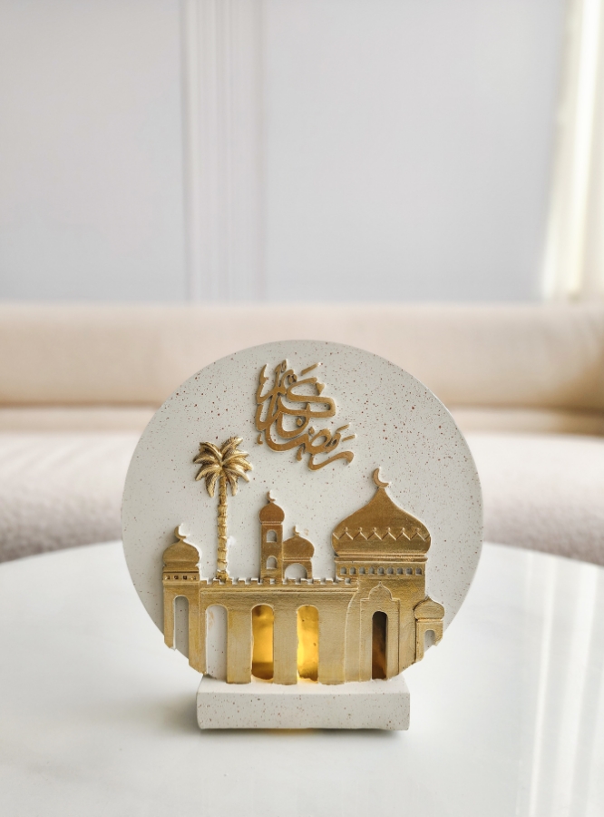 تحفة رمضان دائرية مضيئة باللون الابيض