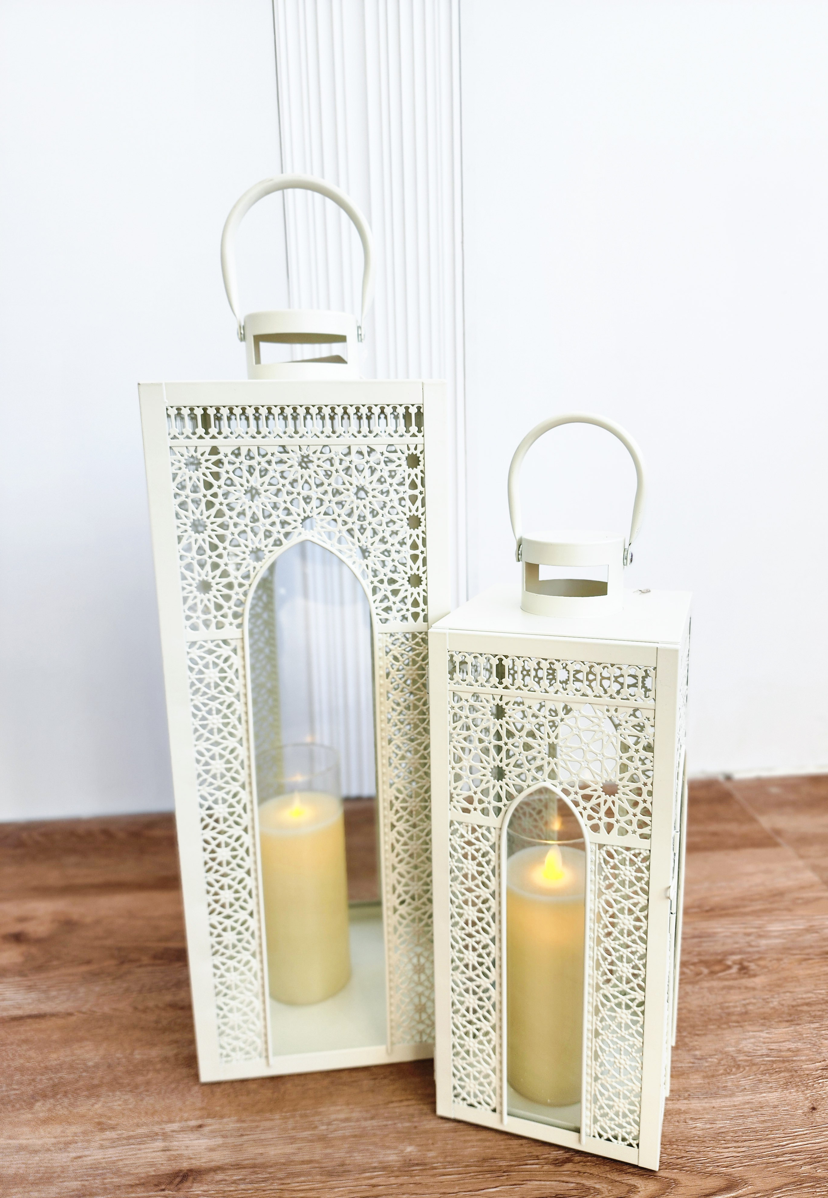 طقم فوانيس قطعتين حديد مستطيل مزخرف