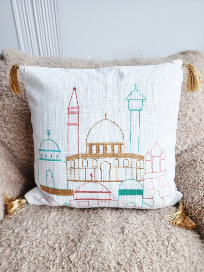 وجه مخدة رمضاني مربع بتطريز ملون 45×45
