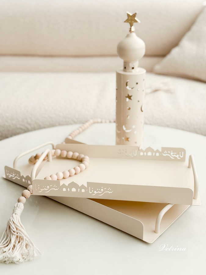 طقم صواني شرفتونا قطعتين حديد لون بيج