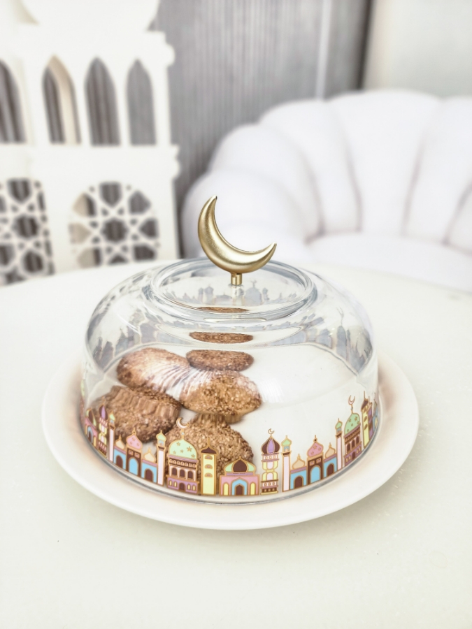 مضيفة رمضانية دائرية تصميم المدينة مع غطاء زجاجي الحجم الكبير