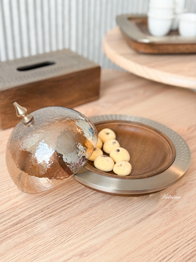 مضيفة قاعدة خشب غطاء زجاج حجم وسط