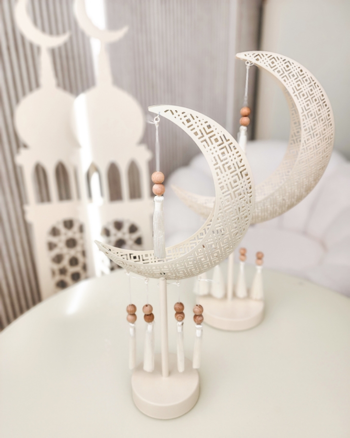 ستاند هلال حديد باللون البيج الحجم الصغير