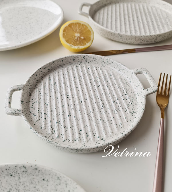 صحن مخطط دائري باللون السكني المنقط بالكحلي حجم وسط