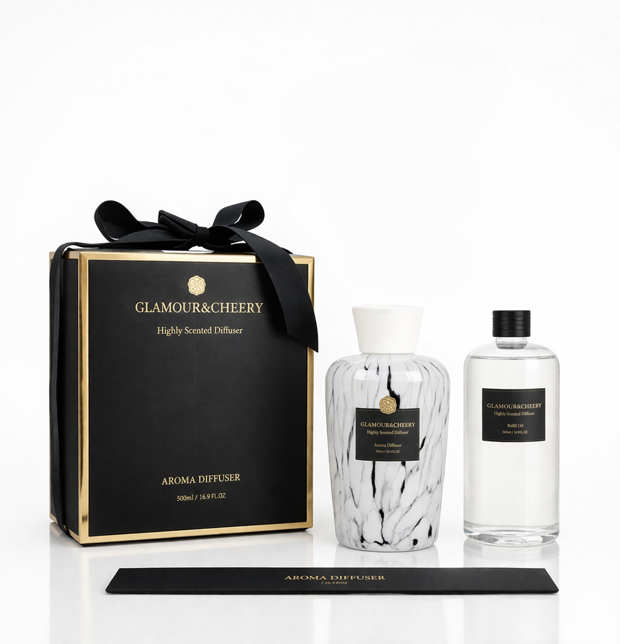 بكج معطر مع علبة زجاجية باللون الابيض 500 مل