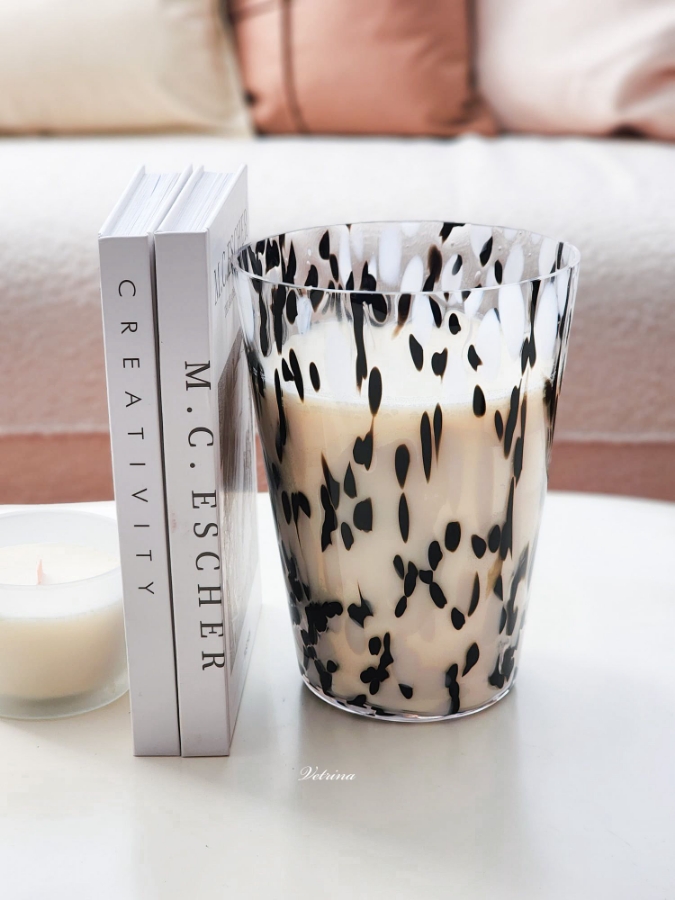 شمعة معطرة منقطة ابيض واسود حجم كبير