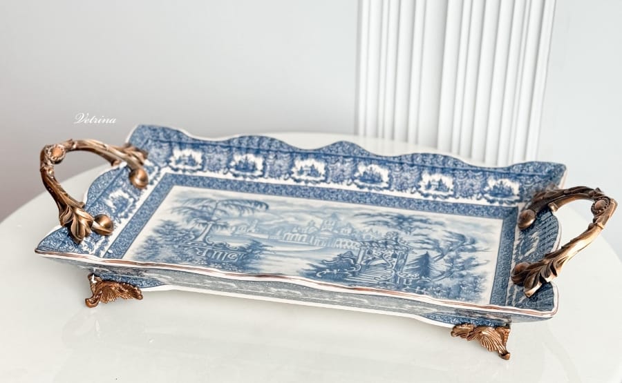 صواني فنتج موشحة باللون الازرق والابيض