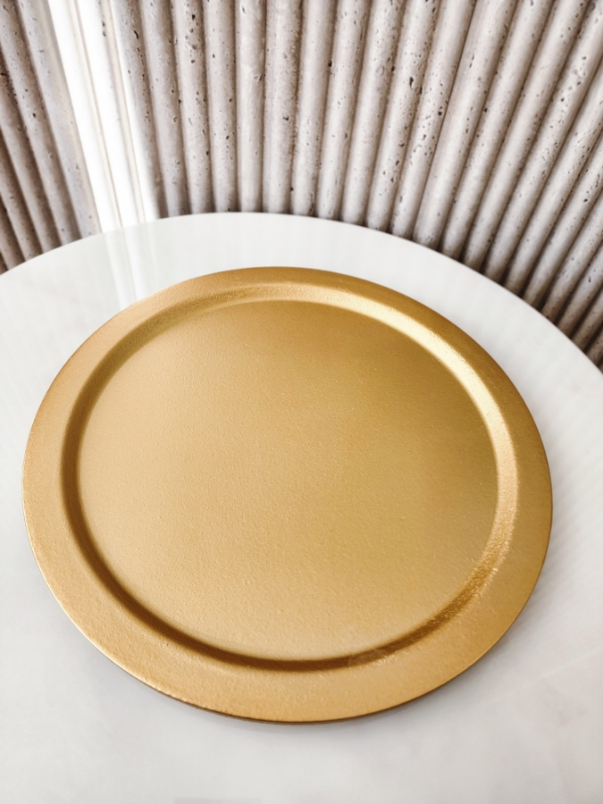 صينية دائرية باللون الذهبي قطر 33 سم