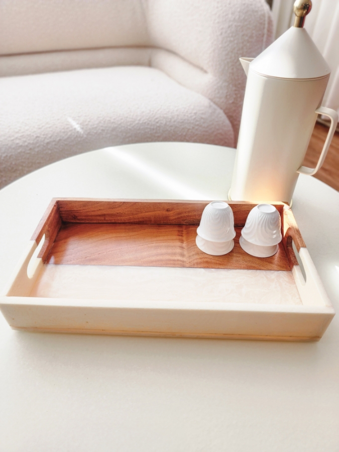 صينية مستطيلة قسمين خشب وريزن الحجم الكبير