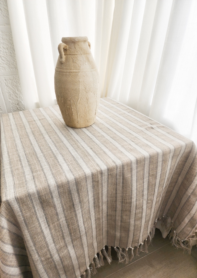 140*220شرشف طاولة مخطط باللون السكني والاخضر