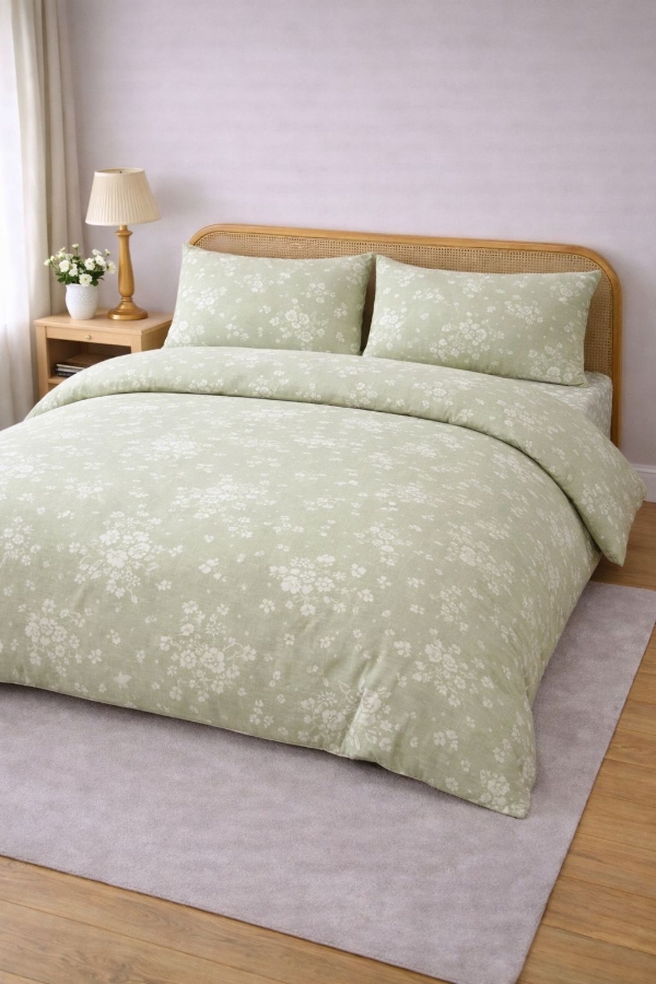 طقم تخت مجوز مورد باللون الفستقي(وجه فرشة وجه لحاف وجهين مخدة)