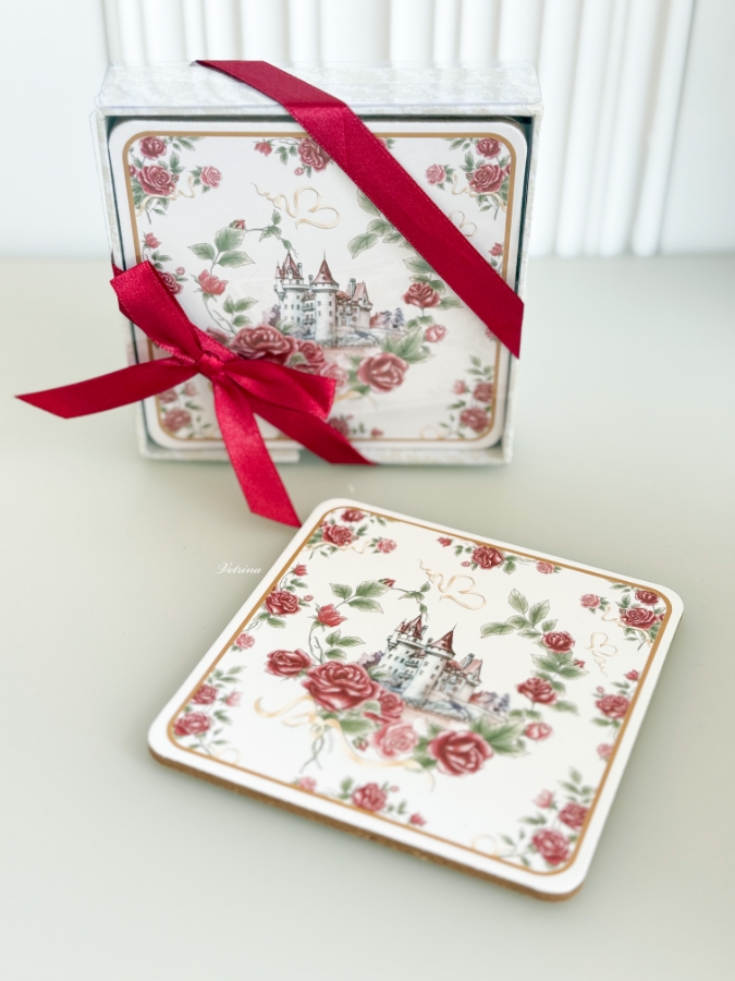 كوسترات 6 قطع برسمة ورود كلاسيكية