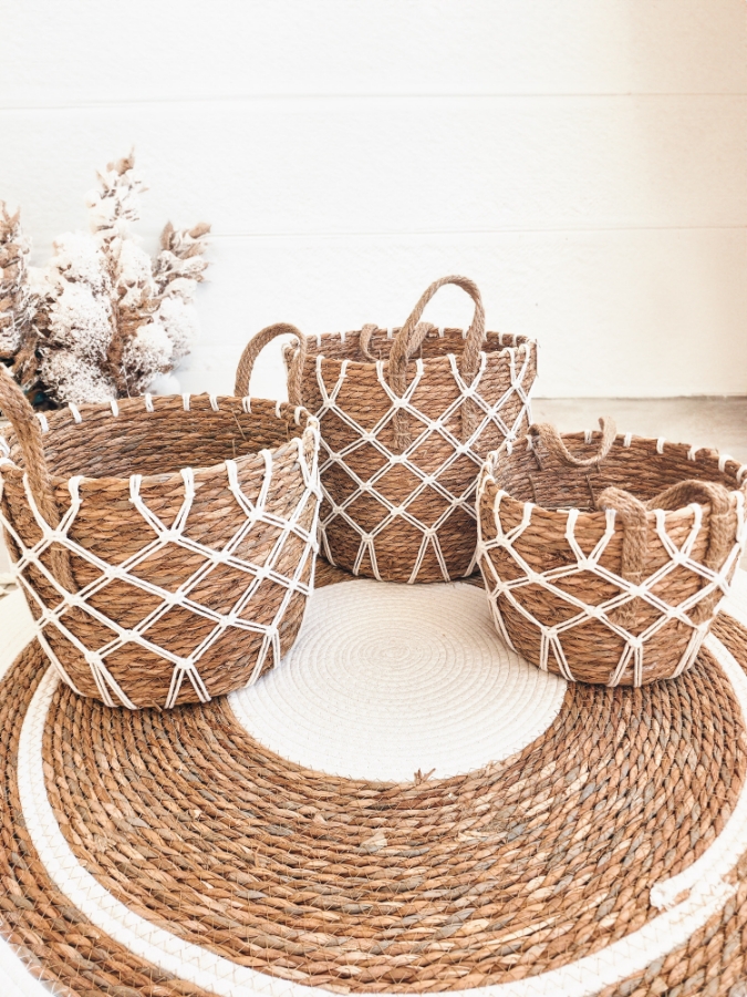 طقم سلات قش ٣ قطع بنقشة ابيض