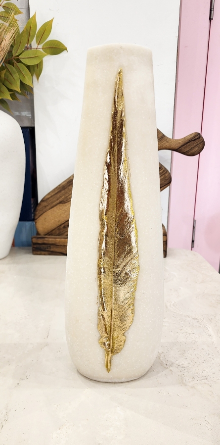فازا باللون الاوفوايت والذهبي ارتفاع 40 سم