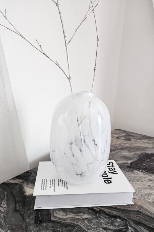 فازا زجاج باللون الابيض والشفاف ارتفاع 30سم قطر 15سم