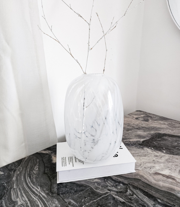 فازا زجاج باللون الابيض والشفاف ارتفاع 35 وقطر 15سم