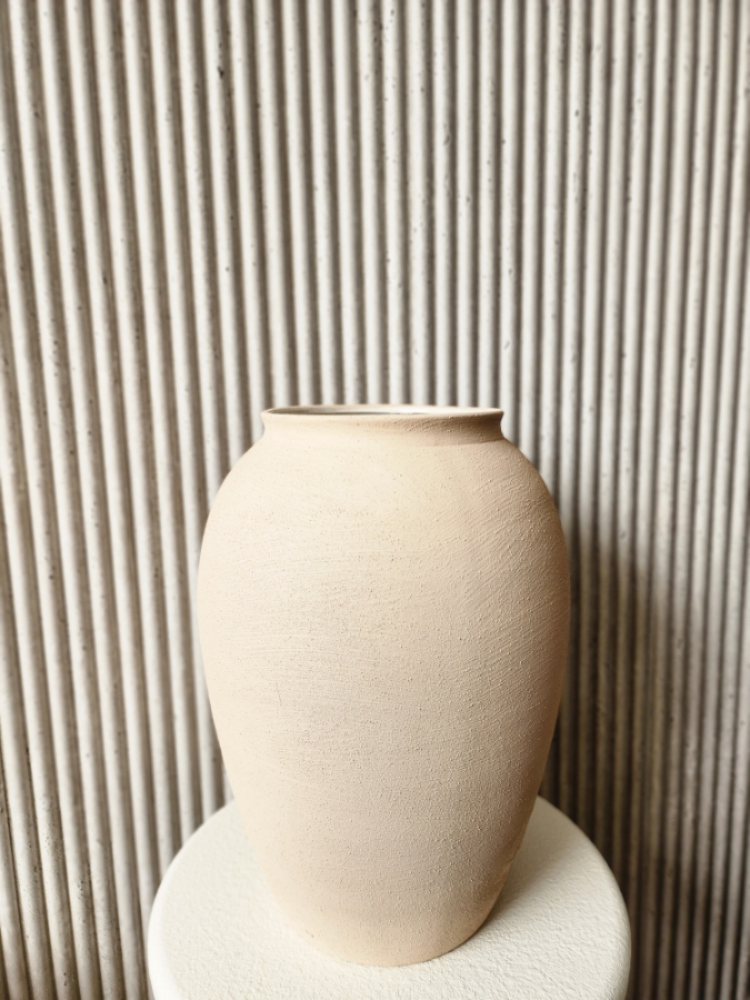 فازة حجرية باللون البيج