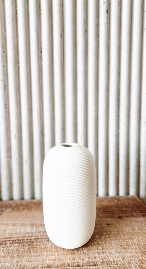 فازة حجرية دائرية بخطوط باللون الابيض