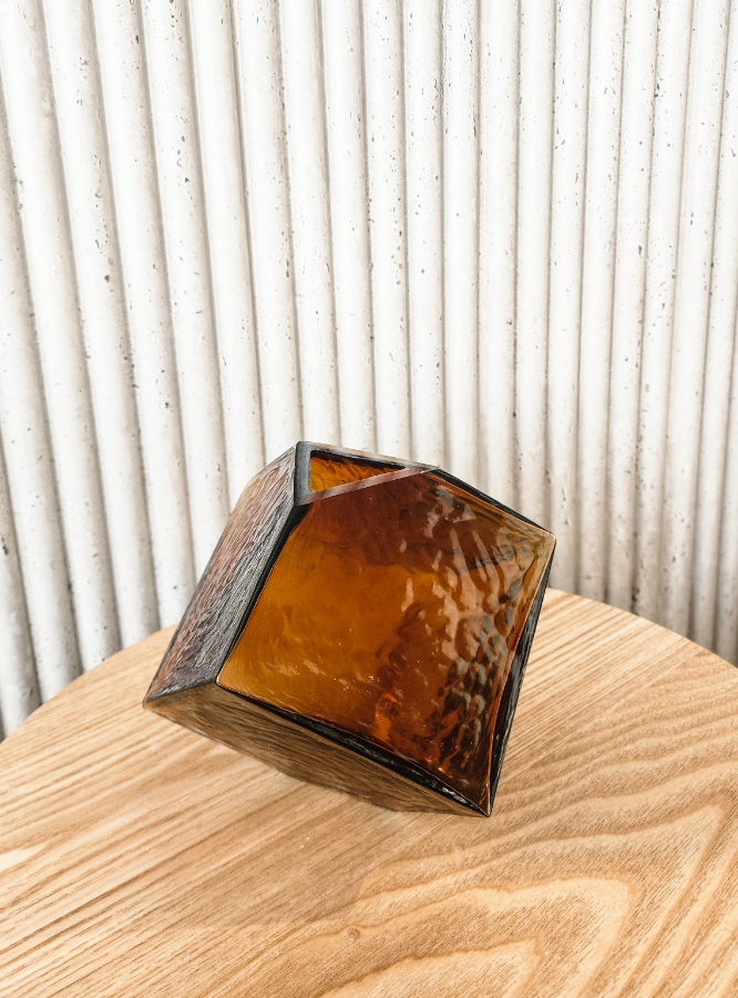 فازة زجاجية بشكل سداسي باللون البني