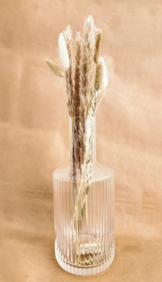 فازة زجاجية شفافة بعنق رفيع طول ٢٦سم