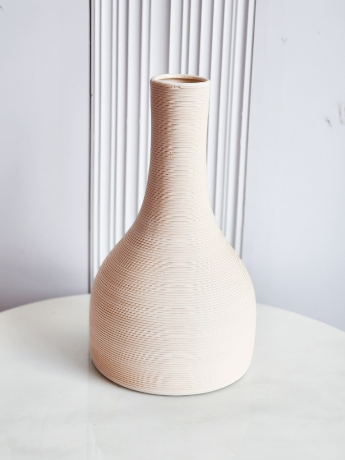 فازة سيراميك مخططة لون بيج