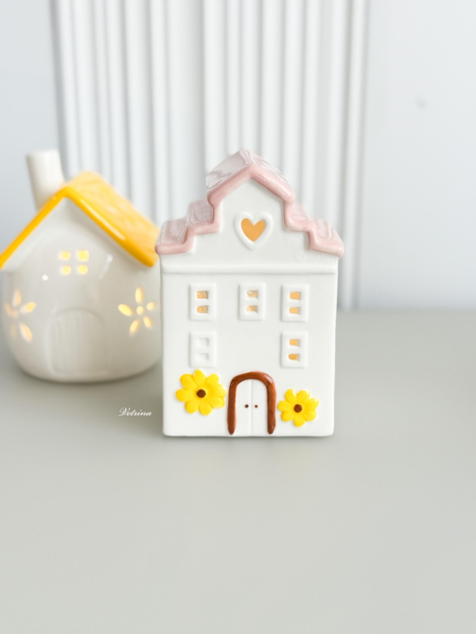 بيت مضيء لون ابيض مع ورود لون اصففر