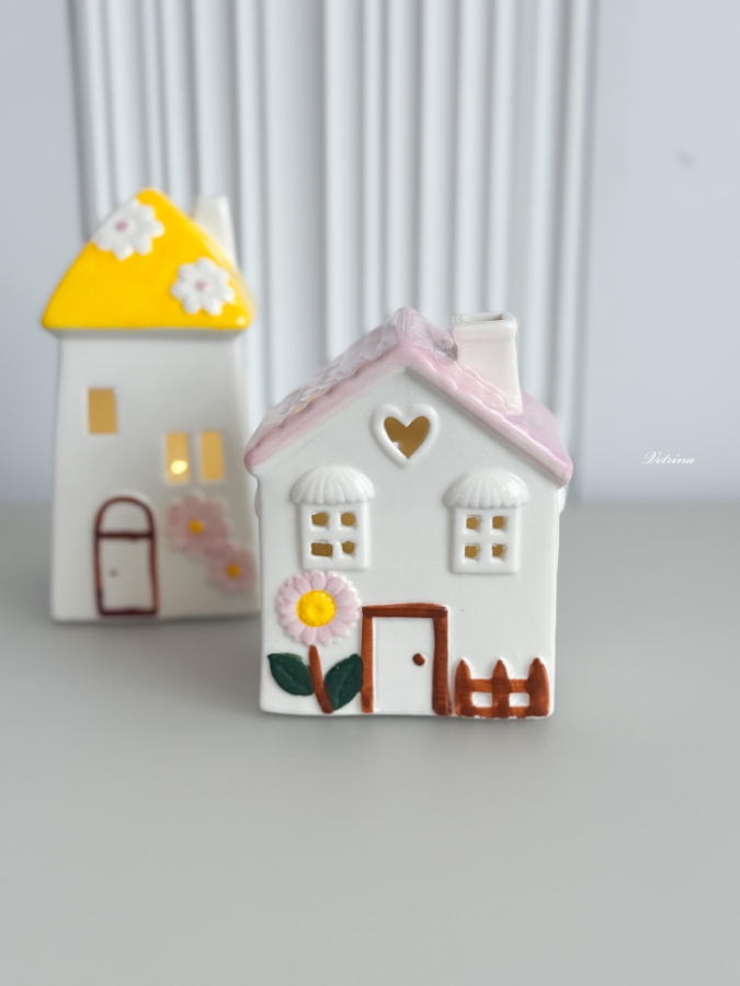 بيت مضيء لون ابيض وزهري