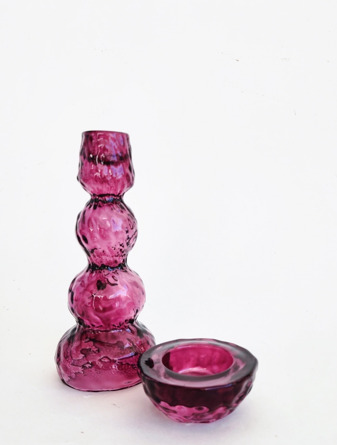 شمعدان زجاجي لشمع المباخر باللون البنفسجي