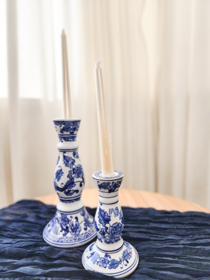 شمعدان زجاجي مزخرف بالازرق الحجم الصغير