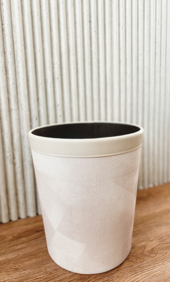 سلة مهملات جلد باللون البيج