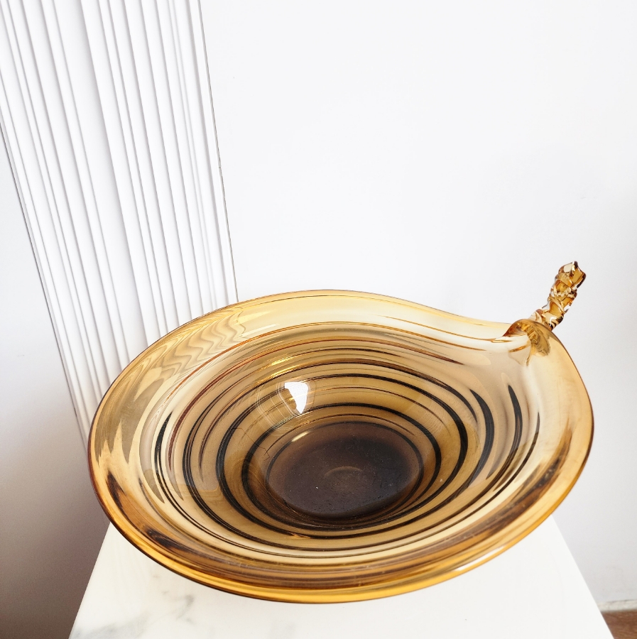 صحن ديكور كريستال دائري باللون العسلي