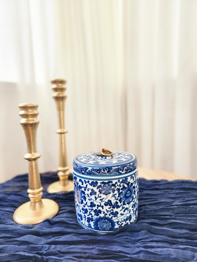 مضيفة ديكور مزخرفة باللون الازرق