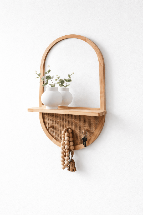 مرآة مع رف خشبي وعلاقات