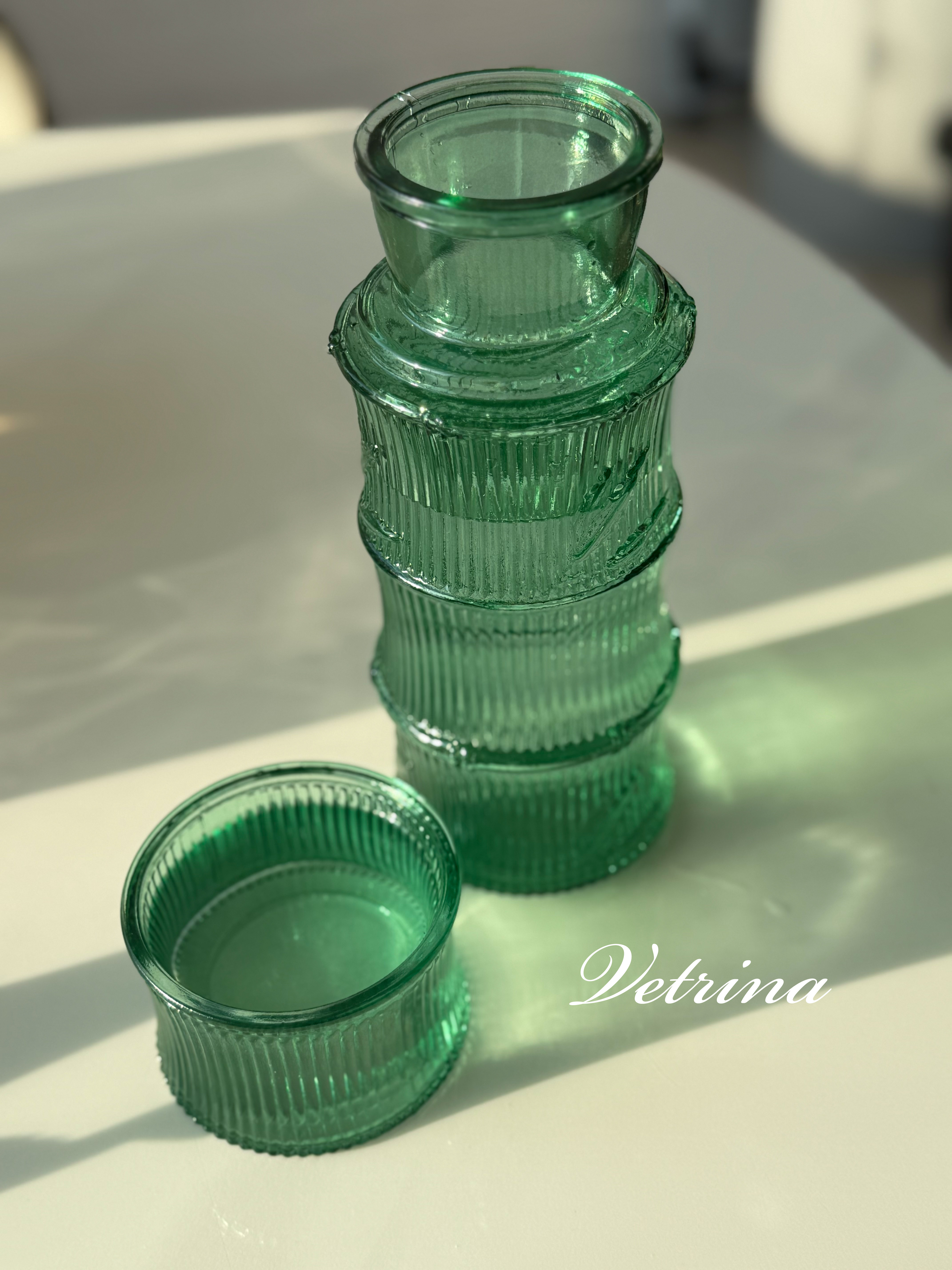 ابريق زجاج مع كوب - زيتي