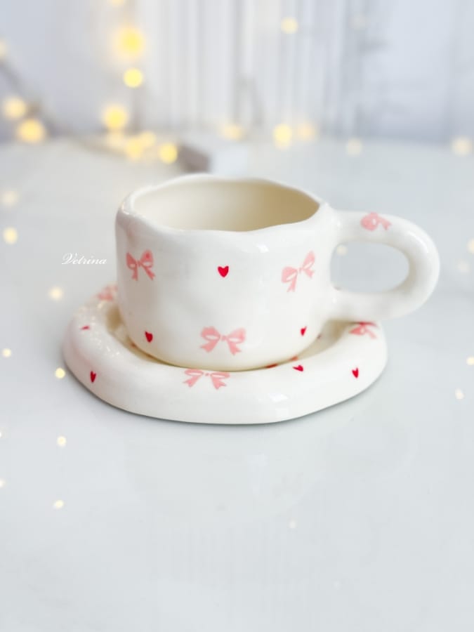 كوب مع صحن شكل ببيونة وقلوب