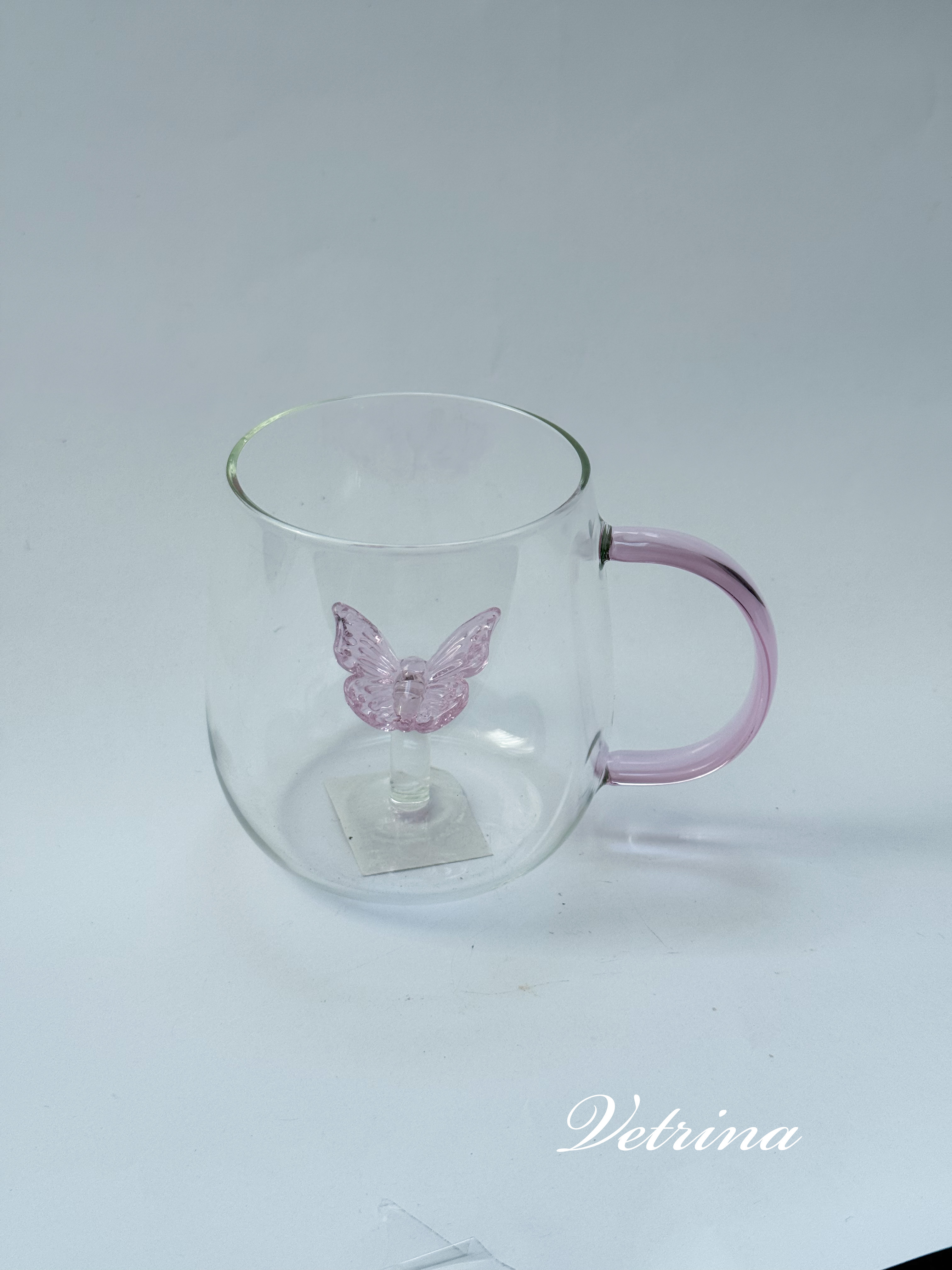 مج زجاجي شفاف فراشة