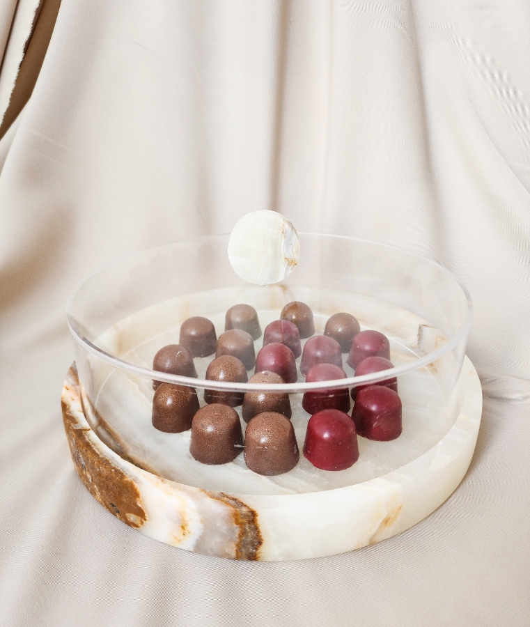 مضيفة حجرية دائرية مع غطاء شفاف