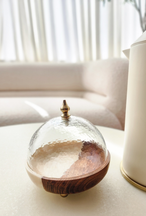 مضيفة دائرية قسمين خشب وريزن الحجم الصغير مع غطاء زجاجي الحجم الصغير
