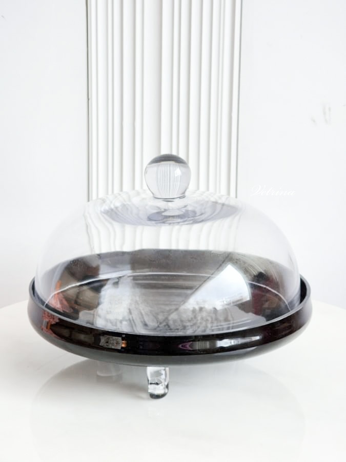 مضيفة قاعدة زجاج لون اسود غطاء شفاف