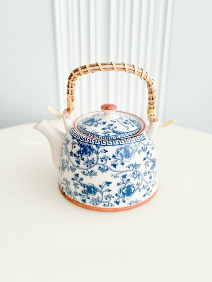 ابريق شاي زجاج تعريقة ازرق ايد خشب مع خيش
