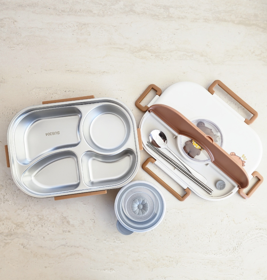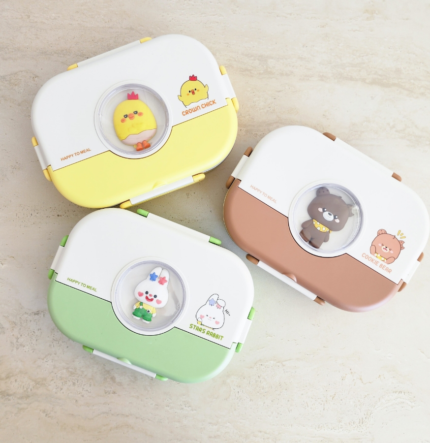 لانش بوكس ستانلس مقسم برسومات(بني،اصفر،اخضر)
