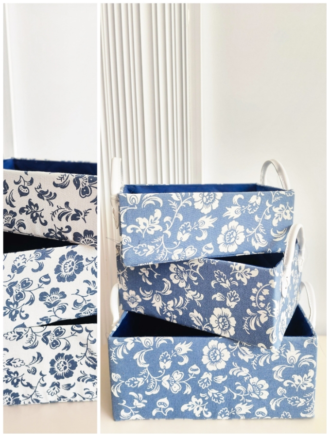 طقم سلات 3 قطع مزخرف باللونين الازرق و الابيض